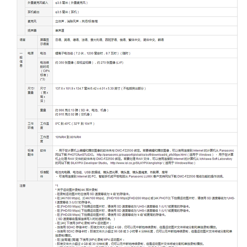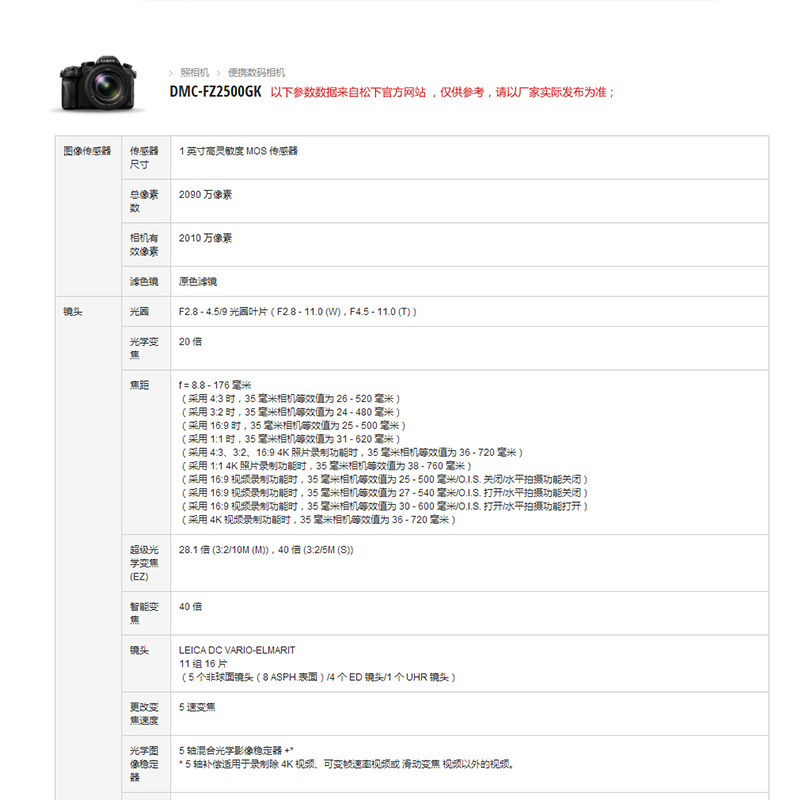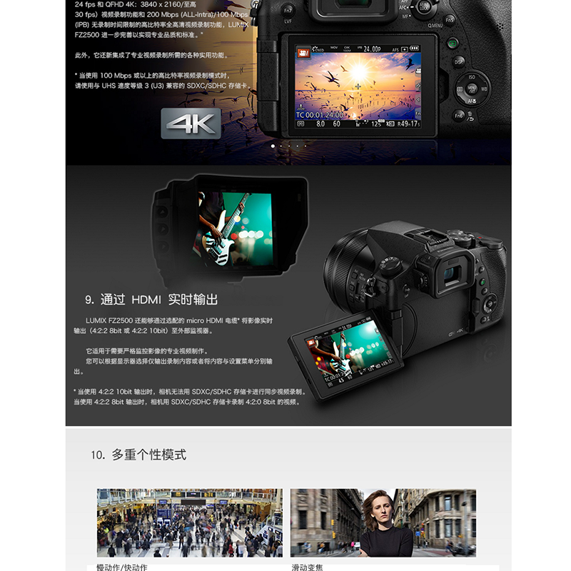 松下(panasonic) DMC-FZ2500GK 混合型數(shù)碼照相機 HDMI實時輸出
