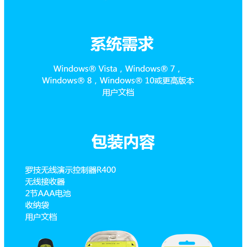 羅技(Logitech) R400 無(wú)線演示器 PPT翻頁(yè)筆 演示筆(激光筆)