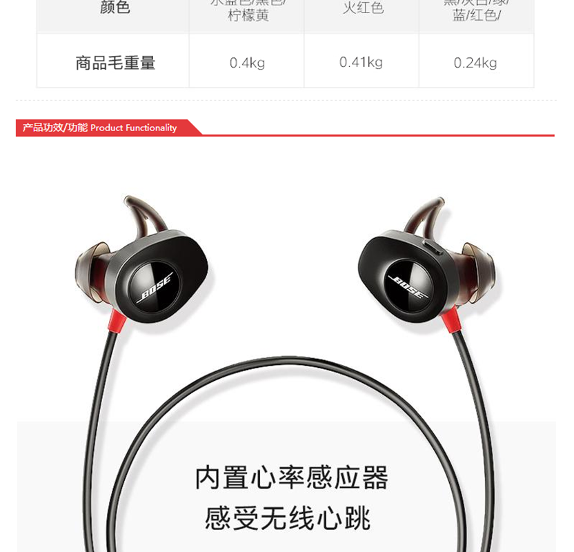 Bose Sound Sport Pulse 無(wú)線藍(lán)牙運(yùn)動(dòng)耳機(jī) 心率監(jiān)測(cè) 火紅色