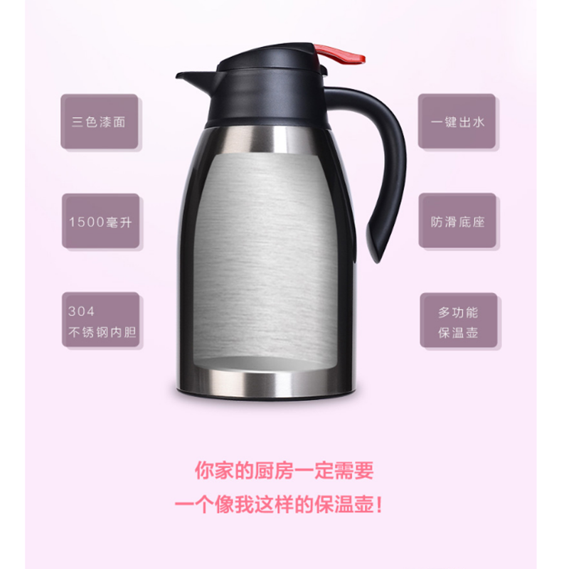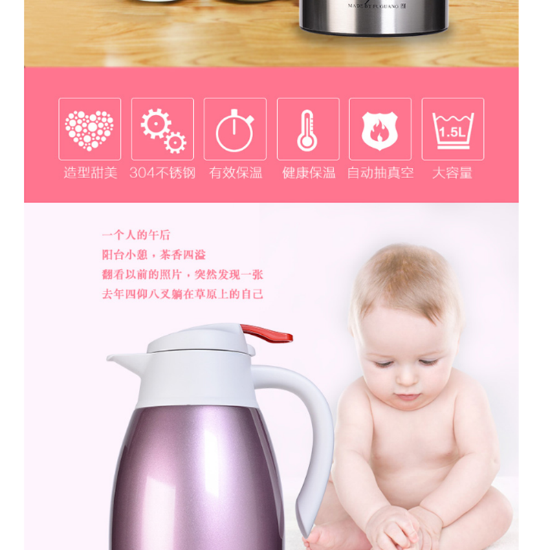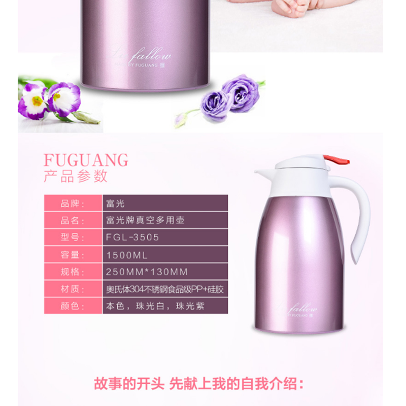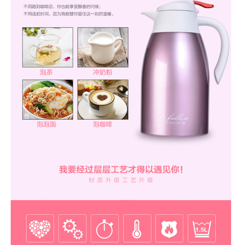 富光 FGL-3505 保溫壺 多用真空壺1.5L居家辦公不銹鋼熱水壺 本色