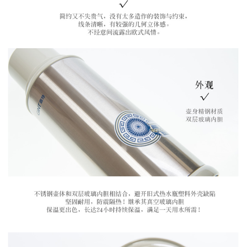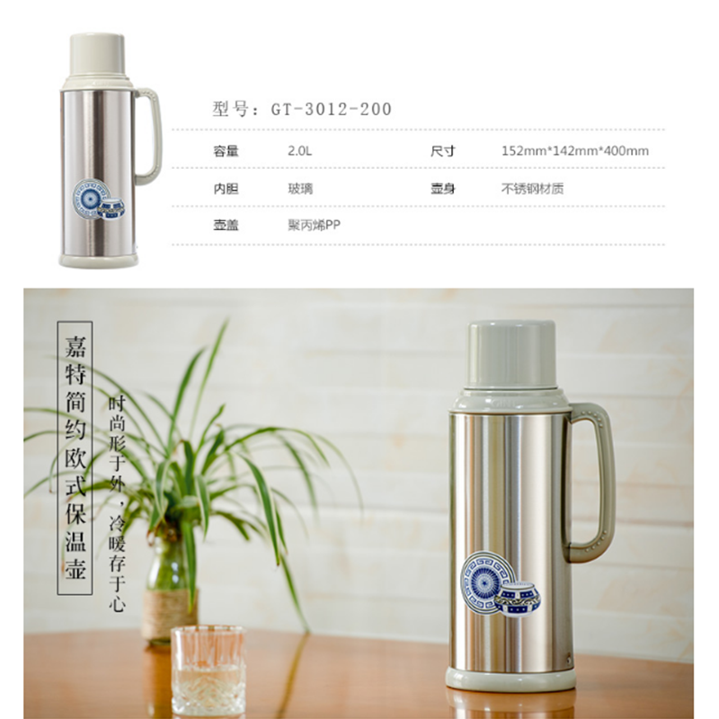 嘉特(GiNT) GT-3012-200Y 不銹鋼保溫瓶熱水瓶暖壺開水瓶保溫壺 玻璃內(nèi)膽2l