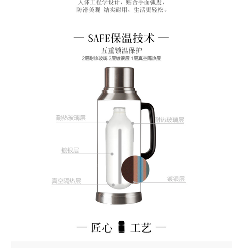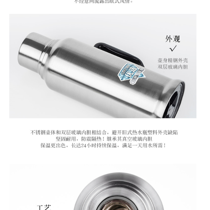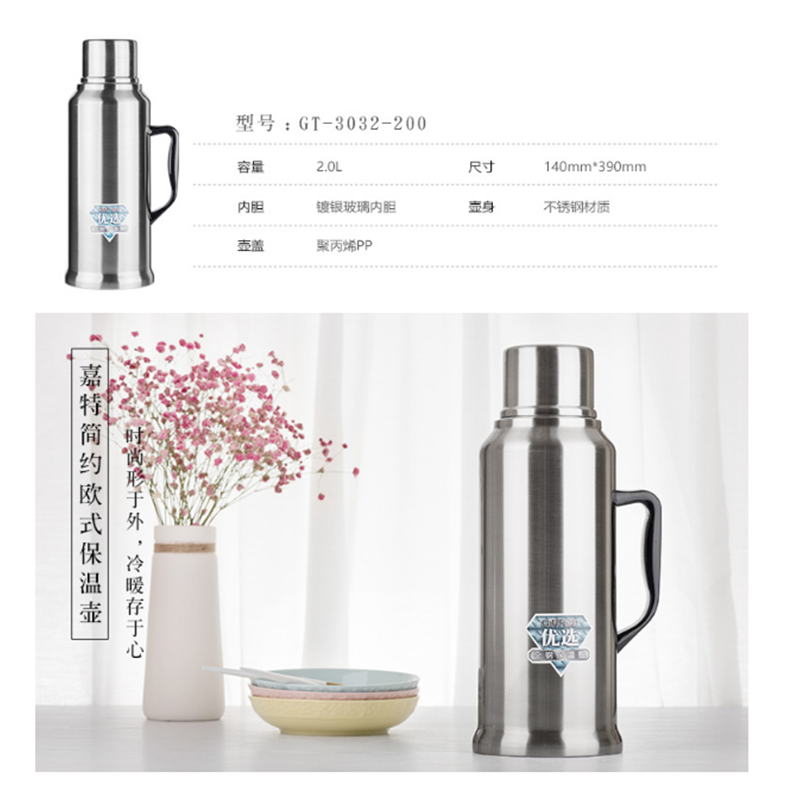 嘉特(GiNT) GT-3032-200 不銹鋼保溫瓶熱水瓶暖壺開水瓶保溫壺 玻璃內(nèi)膽2l