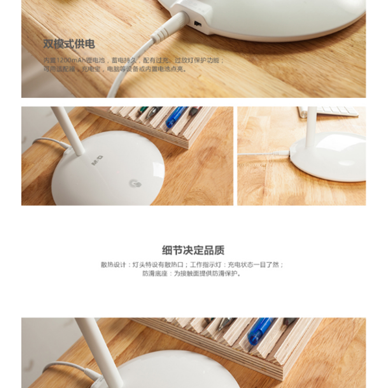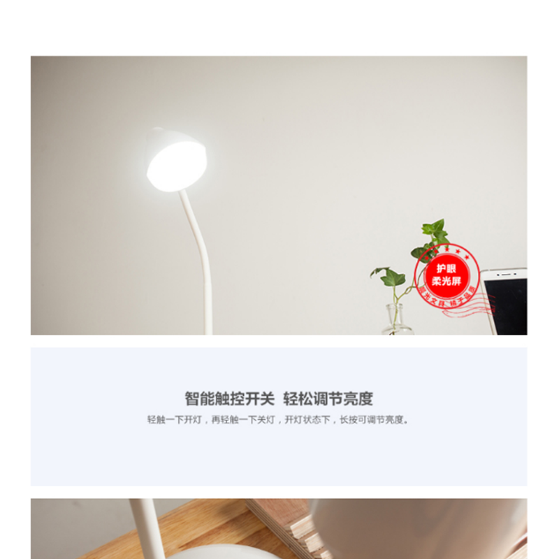 雙模式供電,切換自如,光屏燈罩設(shè)計(jì),光線更柔和,觸控?zé)o極調(diào)光LED ?