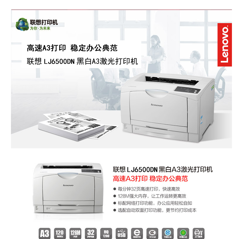 聯(lián)想(Lenovo) LJ6500DN 黑白激光打印機 A3幅面 自動雙面打印