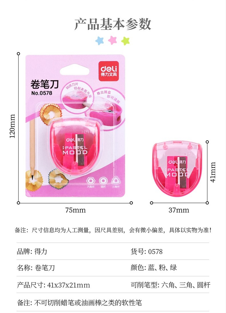 得力(deli) 0578 削筆刀卷筆刀糖果色轉(zhuǎn)筆刀削筆器(混)(只)