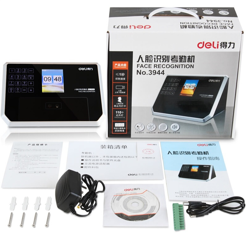 得力(deli) 3944 精準人臉識別考勤機 液晶彩屏/觸摸式按鍵/真人語音