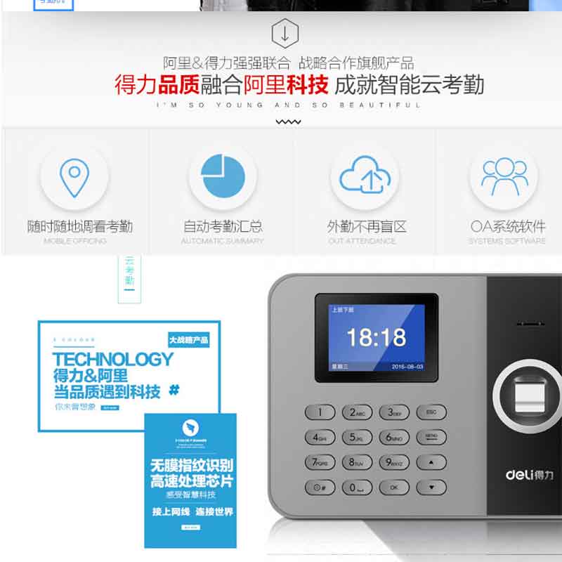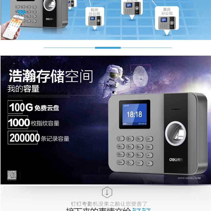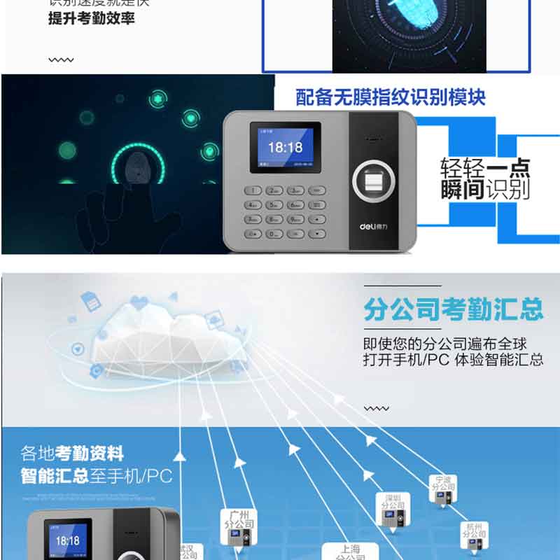 得力(deli) 3761W 得力 指紋考勤機(jī)釘釘網(wǎng)絡(luò)打卡機(jī)上班打卡神器指紋機(jī)遠(yuǎn)程簽到 (網(wǎng)絡(luò)考勤機(jī))WIFI版