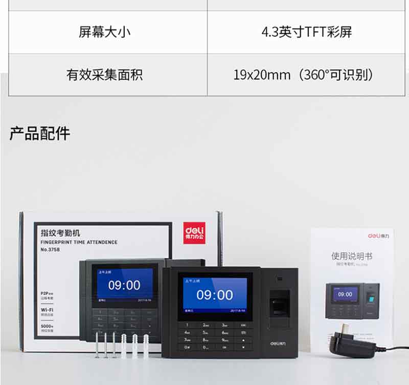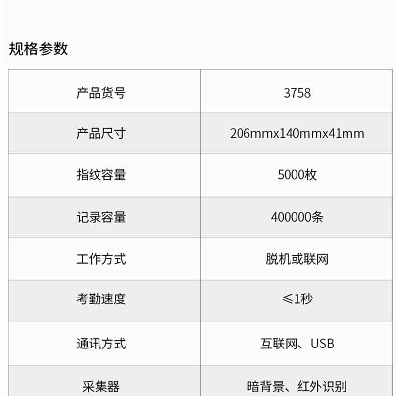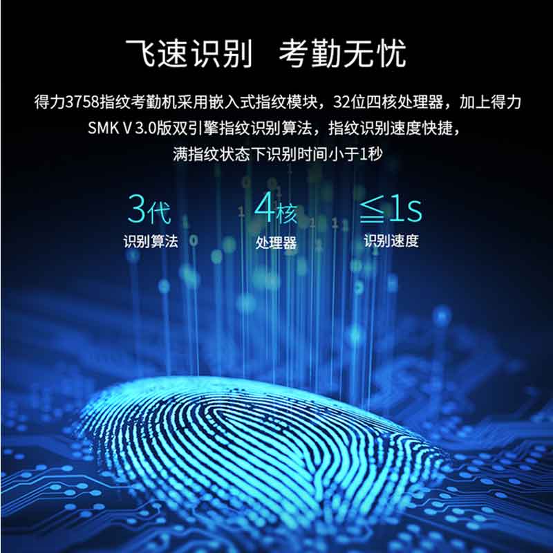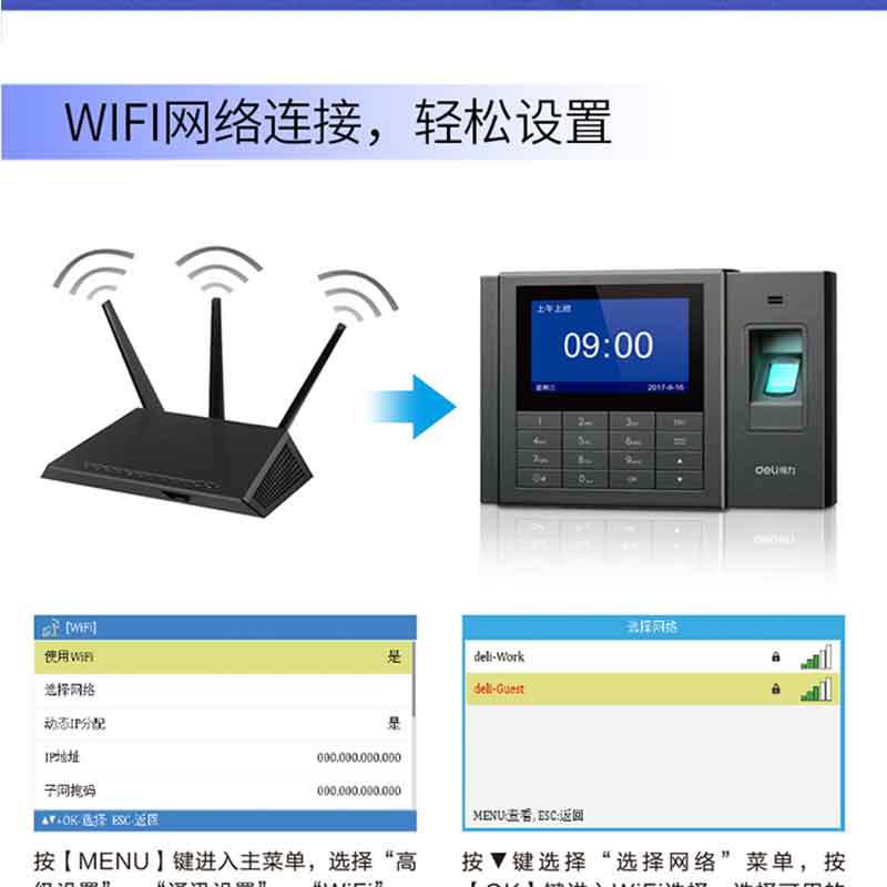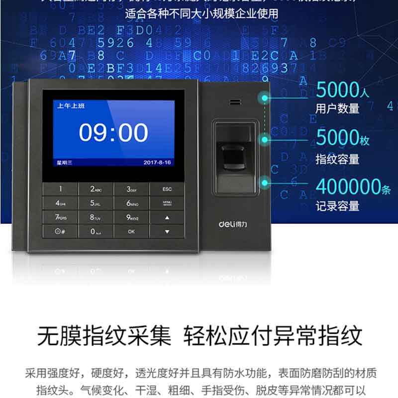 得力(deli) 3758 智能互聯網考勤機 指紋 異地 分店考勤統一管理 WiFi連接入網