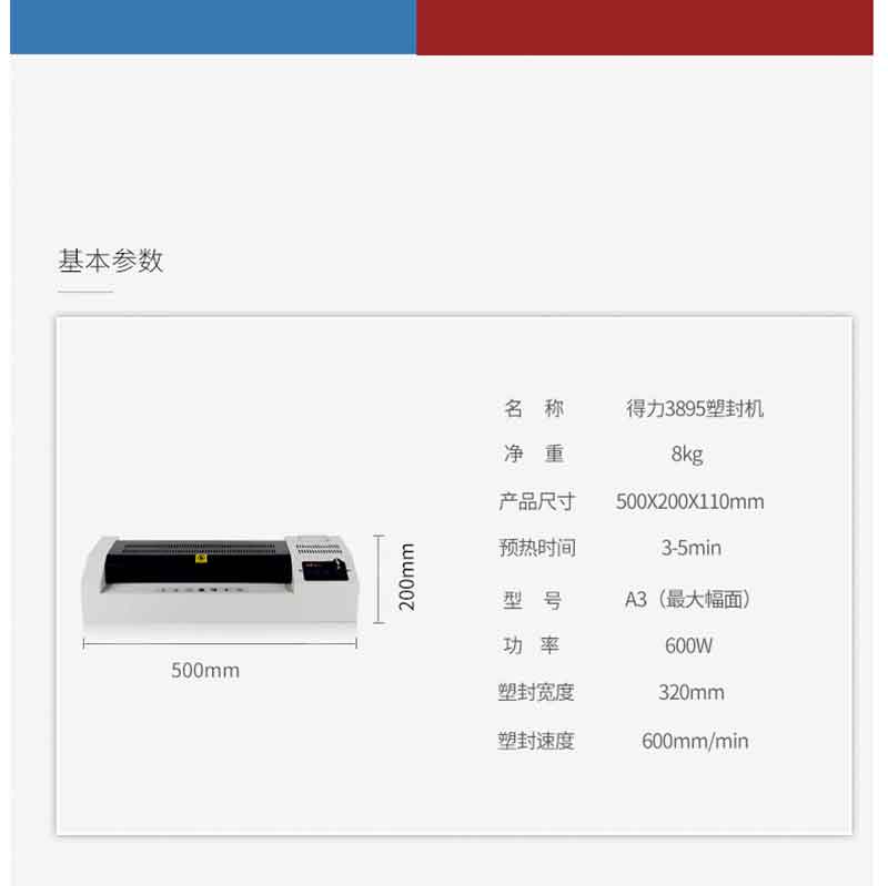 得力(deli) 3895 照片塑封機(jī)A3/A4過塑機(jī) 辦公過膠機(jī) 相片熱裱/冷裱覆膜機(jī)