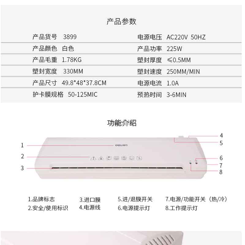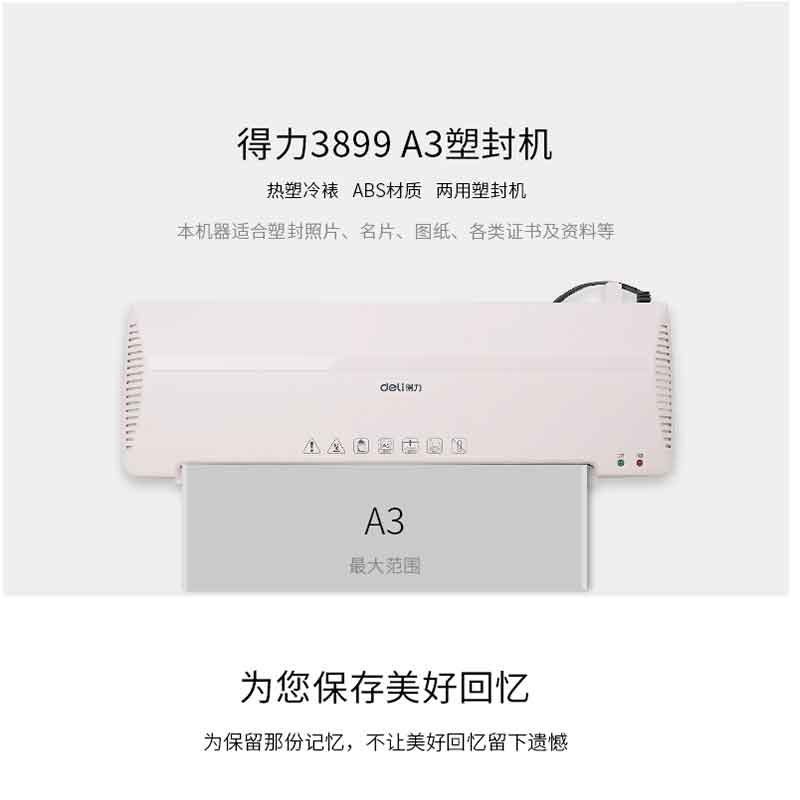 得力(deli) 3899 A3/A4照片過塑機(jī)/過膠機(jī)/覆膜機(jī)/塑封機(jī) 白色