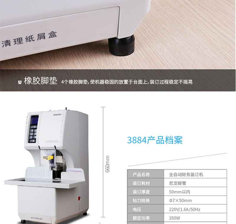 得力(deli) 3884 全自動財務憑證裝訂機 檔案打孔機 一鍵操作 裝訂厚度:31—50mm