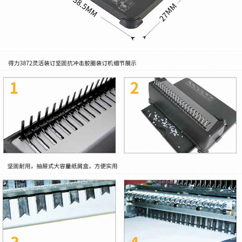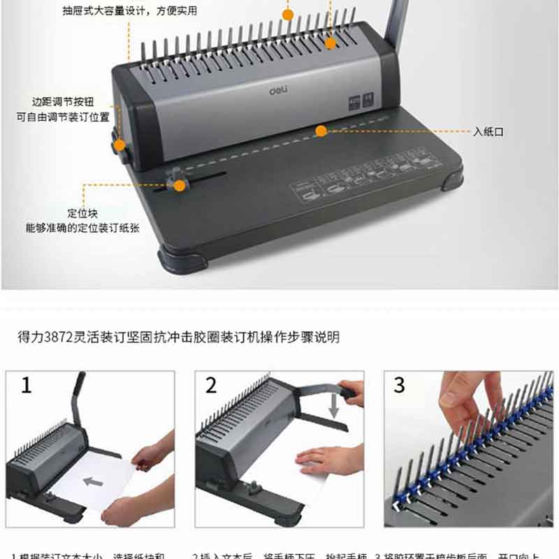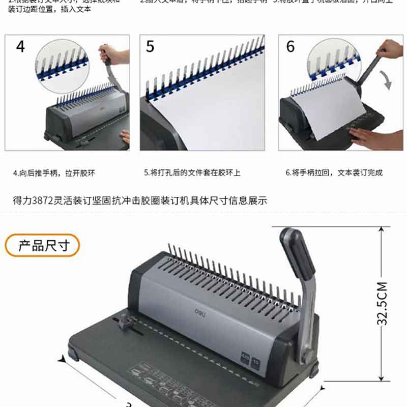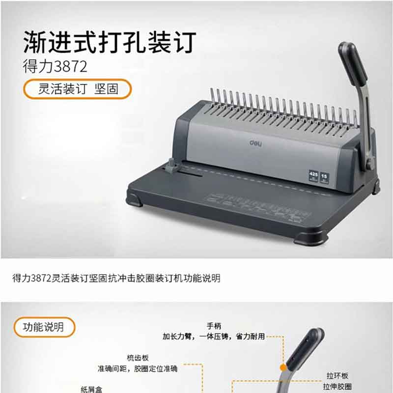 得力(deli) 3872 省力型21孔文件裝訂機(jī)打孔機(jī) 膠圈/夾條裝訂