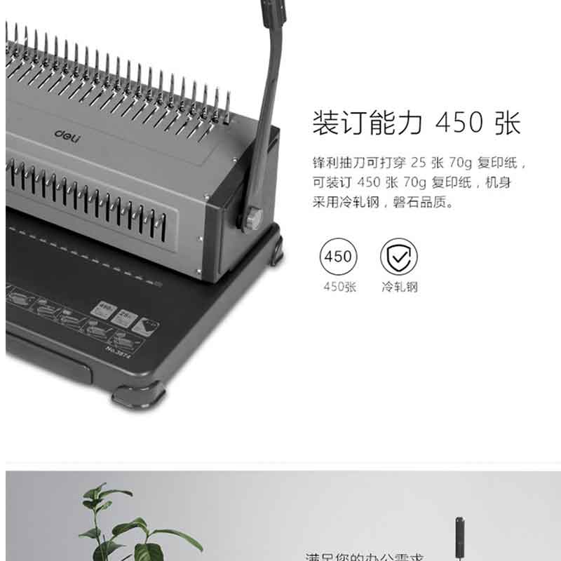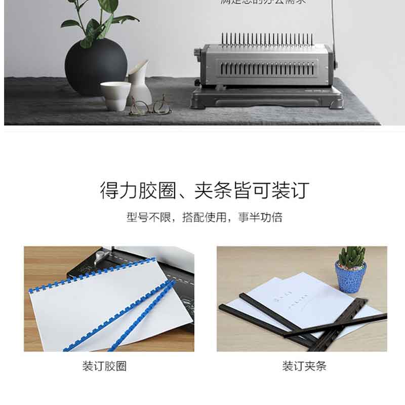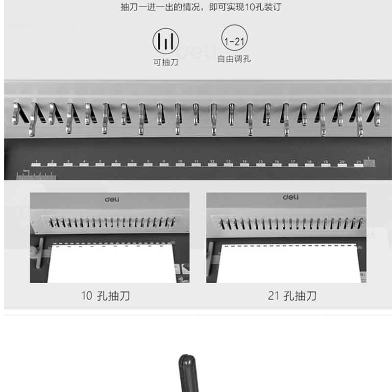 得力(deli) 3874 省力型膠圈/夾條裝訂機(jī) 21孔可調(diào)文件打孔機(jī)