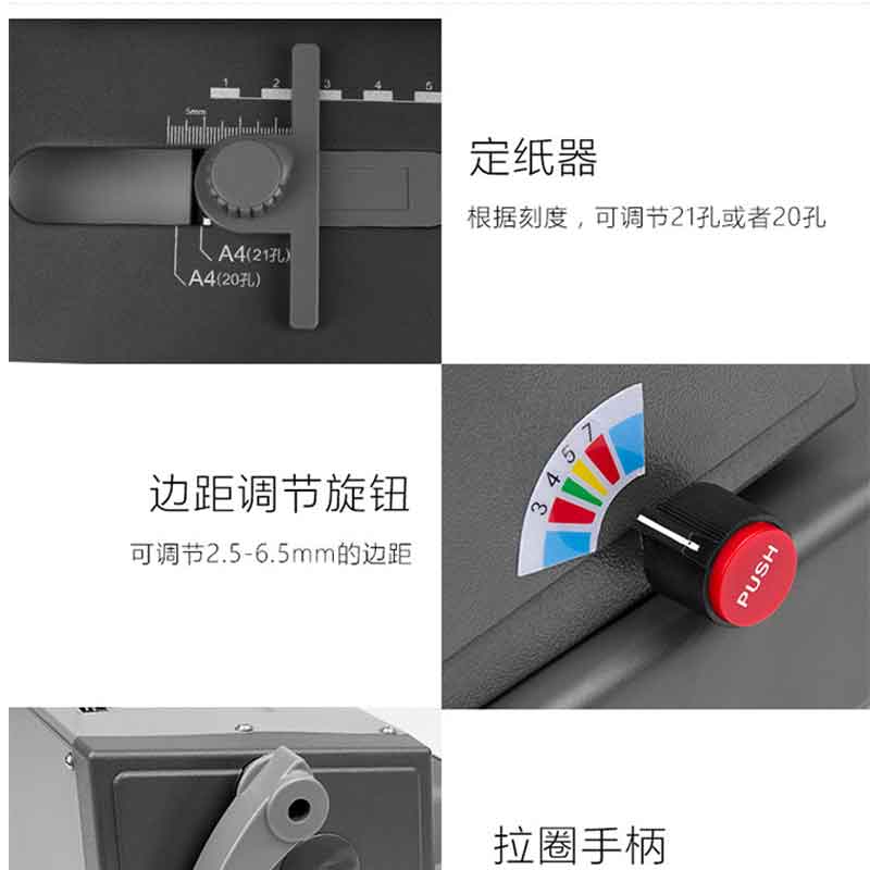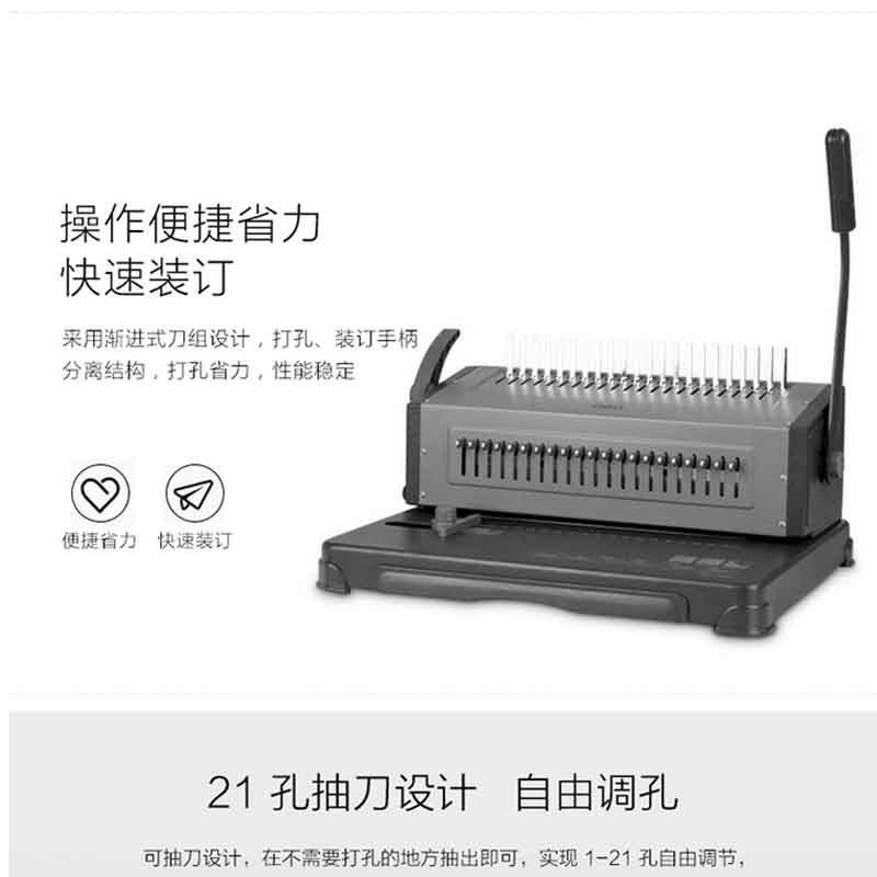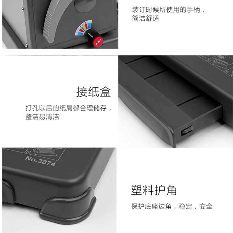 文件資料裝訂機(jī),漸進(jìn)式省力刀俎,輕松打孔,裝訂能力≤450張,單次打孔25張。 ?