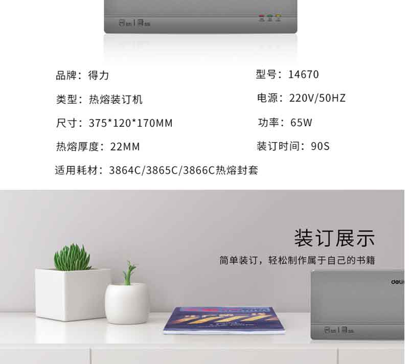 得力(deli) 14670 熱熔裝訂機 合同/標書膠裝機