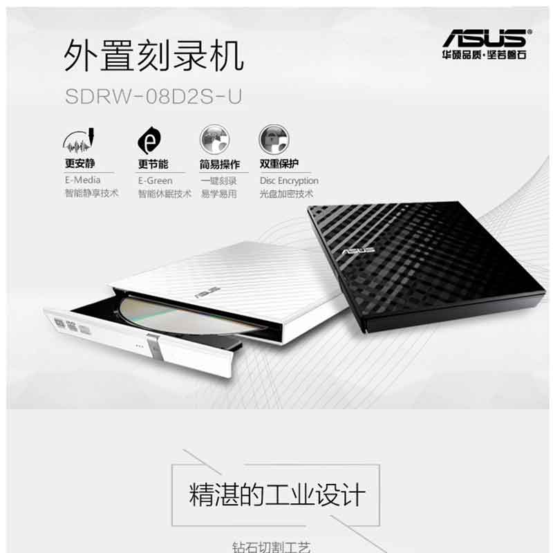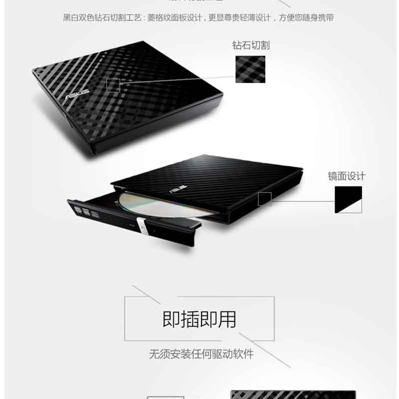 華碩(ASUS) SDRW-08D2S-U 8倍速 USB2.0 外置DVD刻錄機 移動光驅(qū) 黑色(兼容蘋果系統(tǒng))