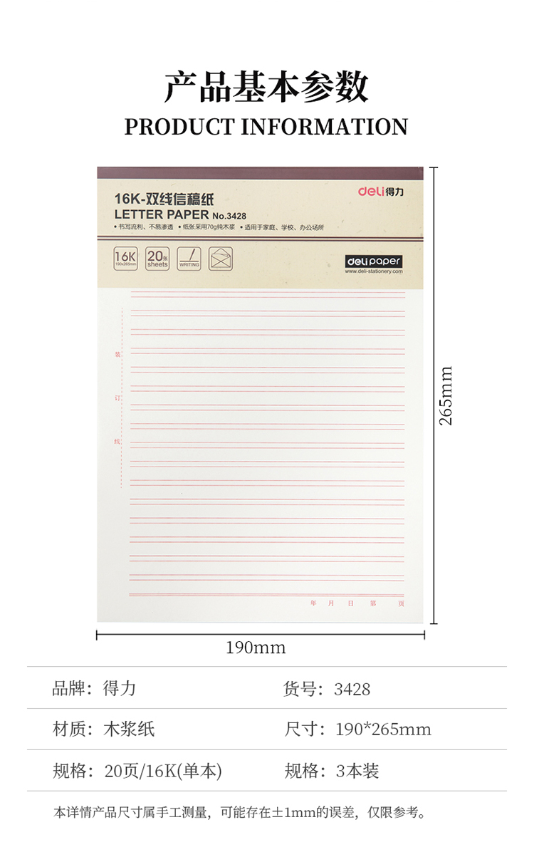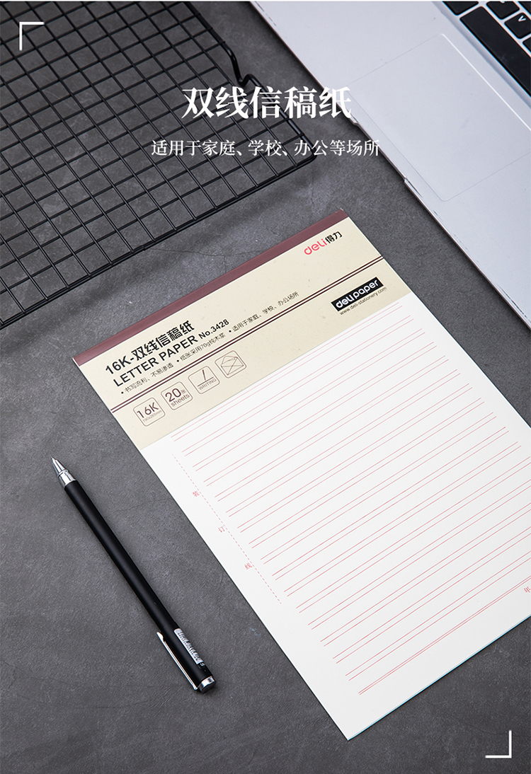 得力(deli) 3428 雙線信稿紙-70g-266*190mm(本)