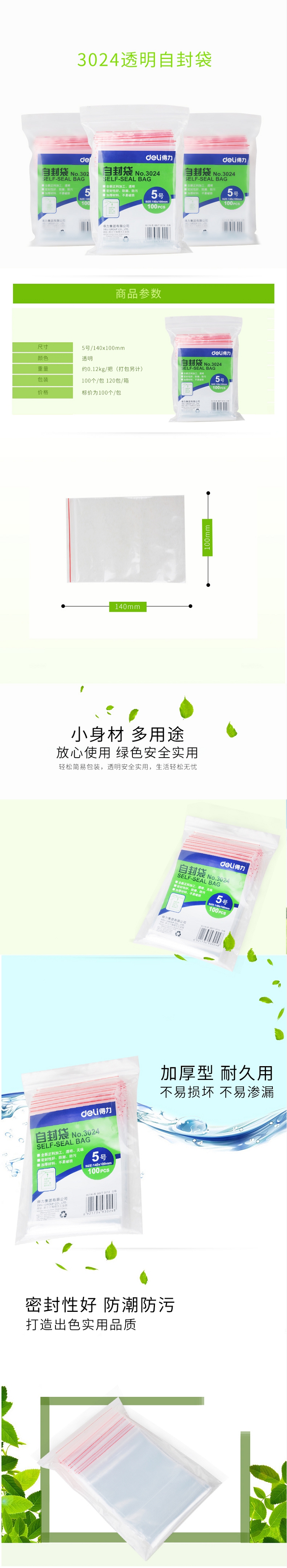 得力(deli) 3024 自封袋(透明)-5號(hào)(100個(gè)/包)150x100mm0.04mm