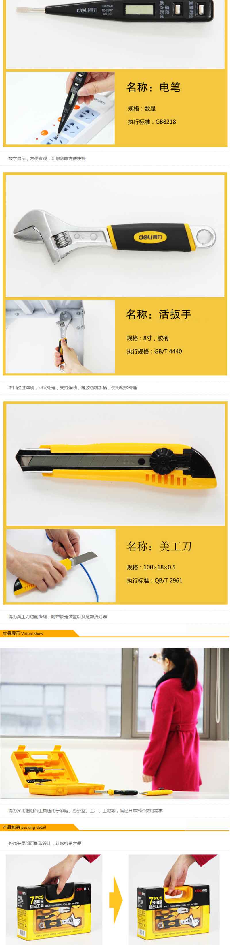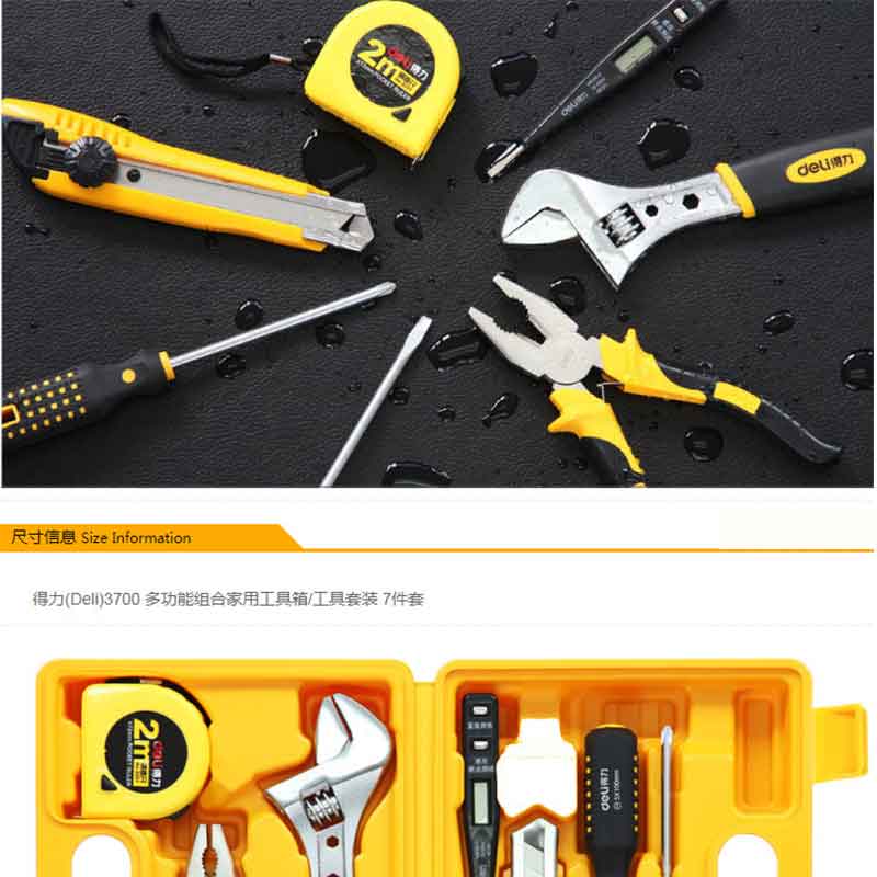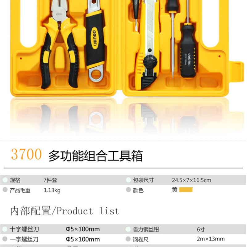 得力(deli) 3700 多功能組合家用工具箱/工具套裝 7件套