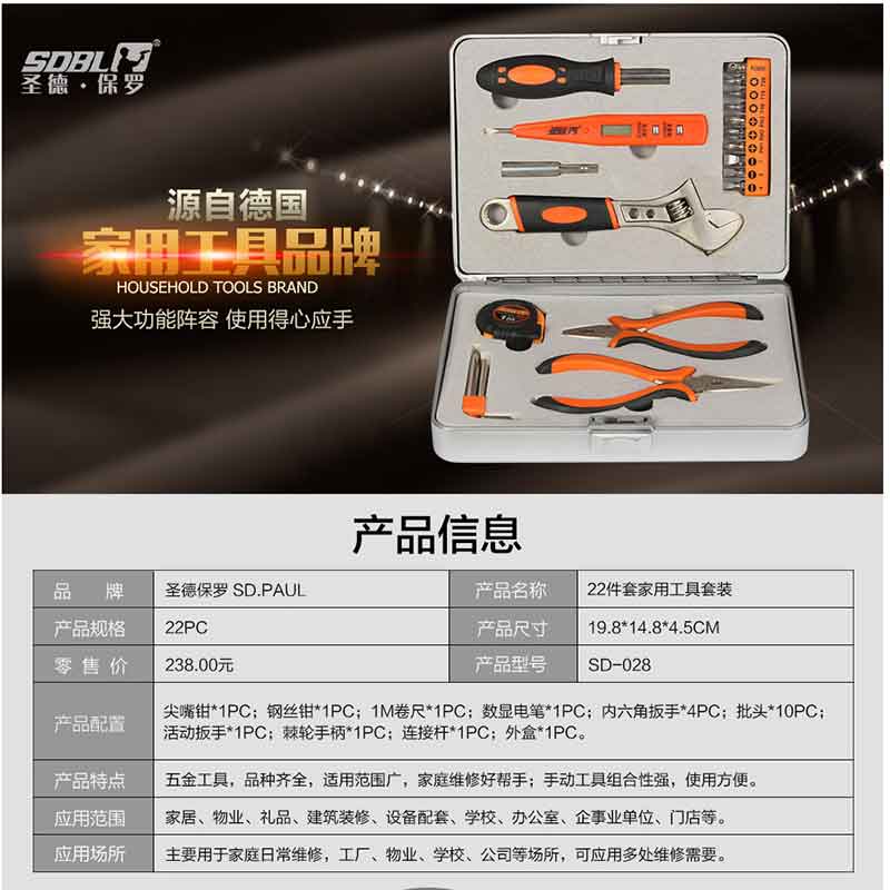 圣德保羅(SDBL) SD-028 家用迷你工具箱 五金工具22件套迷你工具組合 德國品質(zhì)
