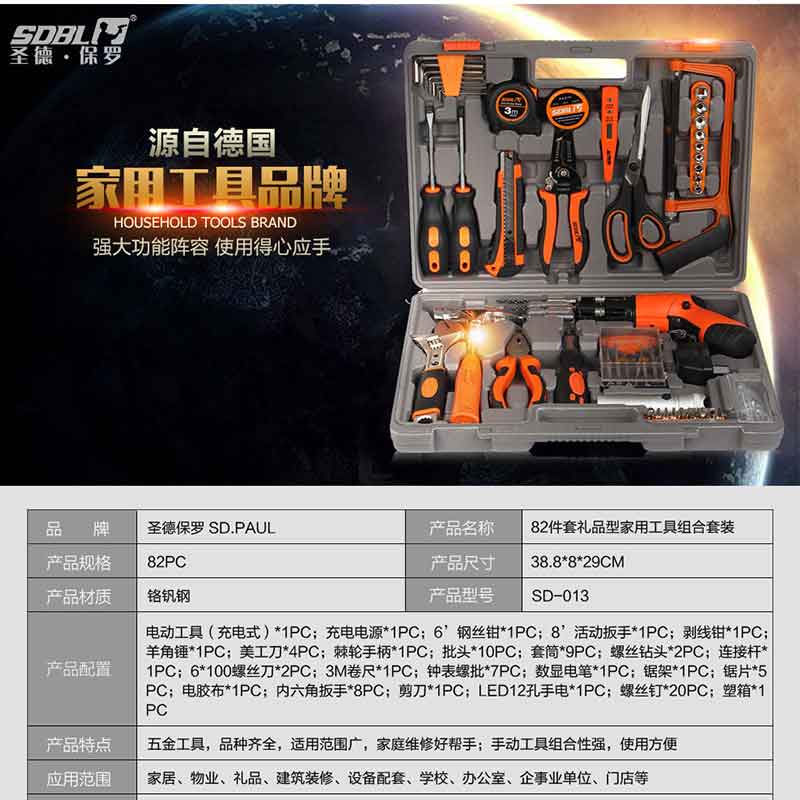 圣德保羅(SDBL) SD-013-W 84件套電動(dòng)工具組合 多用組套含電鉆 家用車用工具箱五金工具包