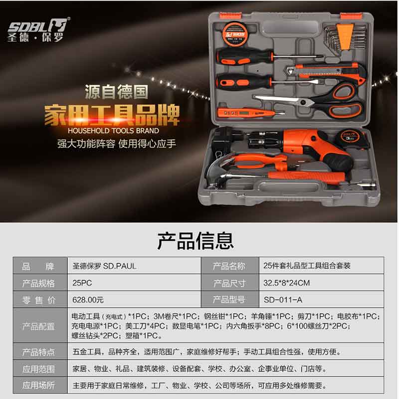 圣德保羅(SDBL) SD-011-A 25件套禮品型工具組合含電鉆 手動工具電動工具箱