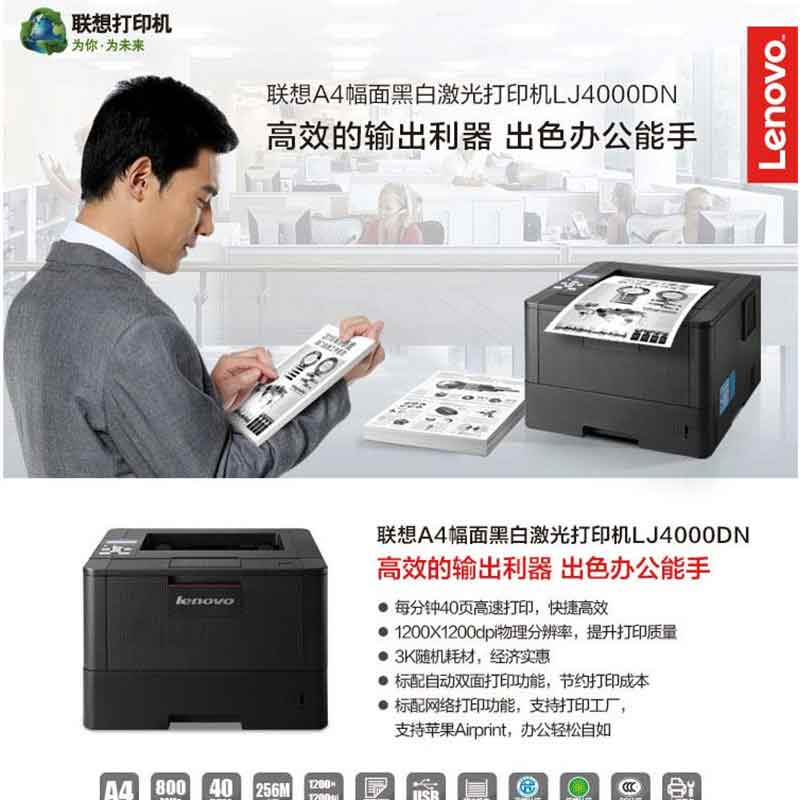 聯(lián)想(Lenovo) LJ4000DN 黑白激光打印機(jī) A4幅面 自動雙面打印