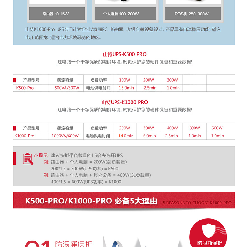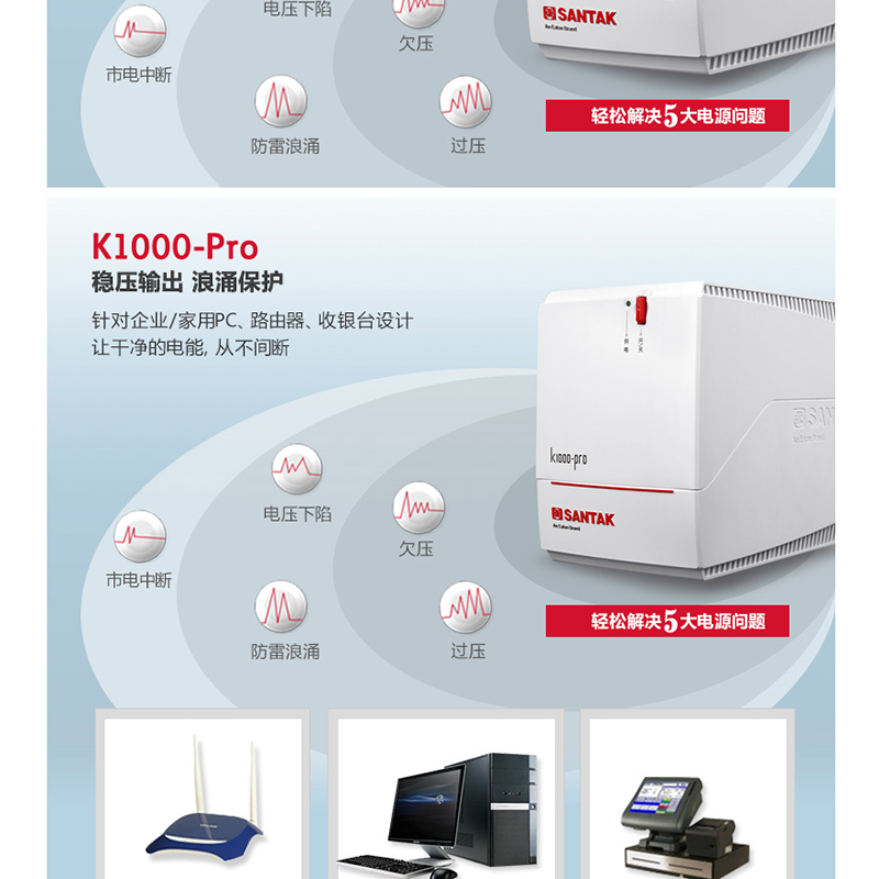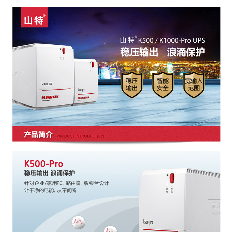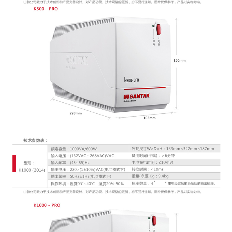 山特(SANTAK) K500-pro UPS不間斷電源500VA/300W 20分鐘