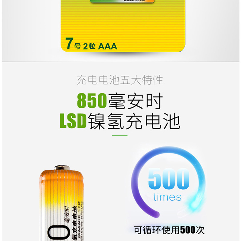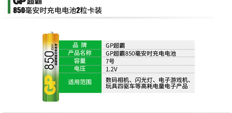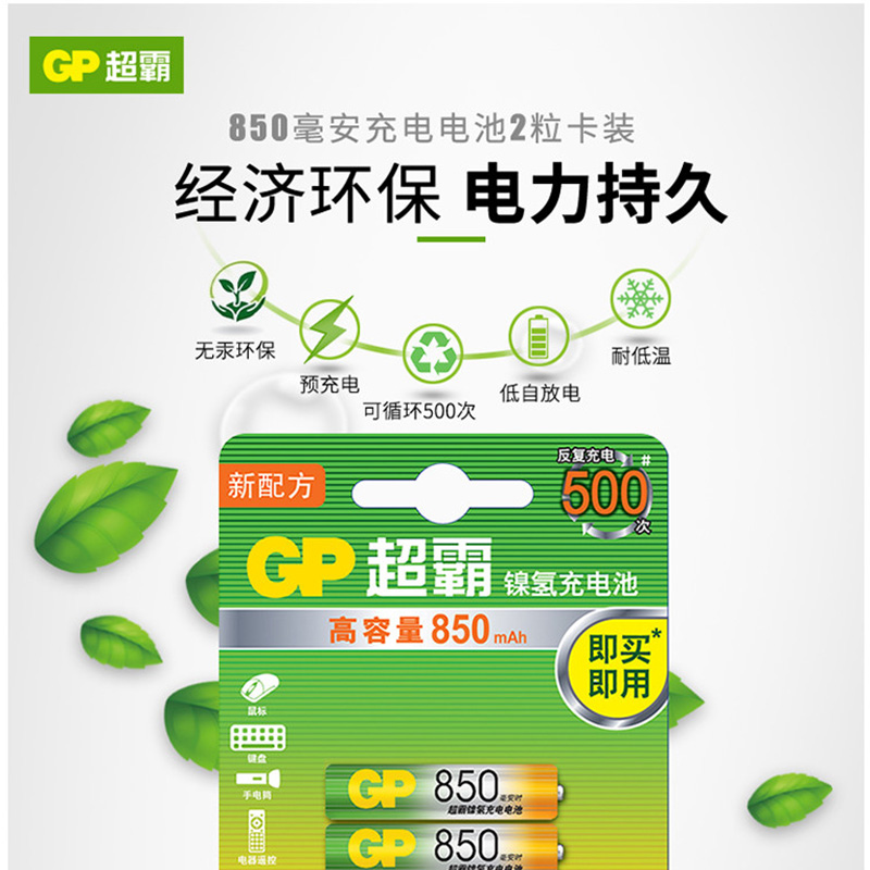 超霸(GP) 85AAAHC-L2 充電電池7號2節(jié)裝電話遙控器相機玩具體重秤血壓儀850毫安AAA
