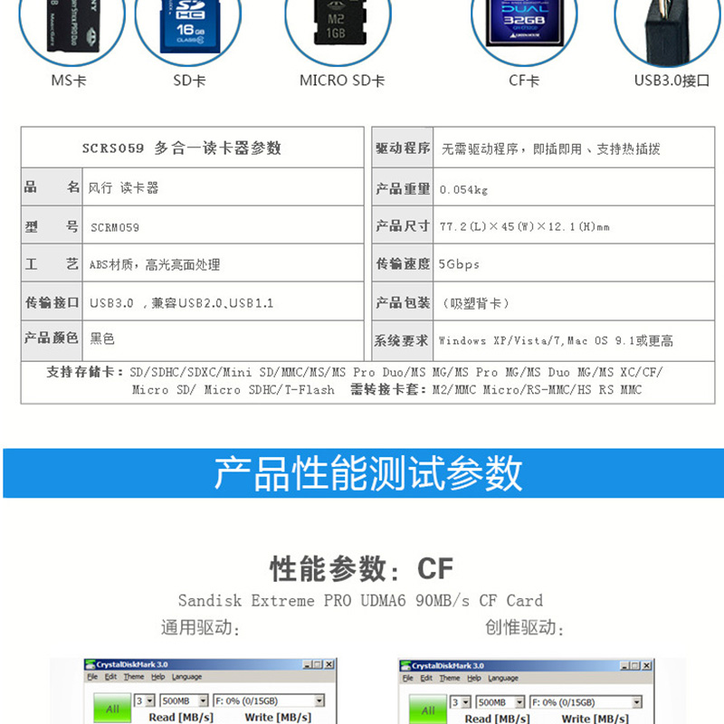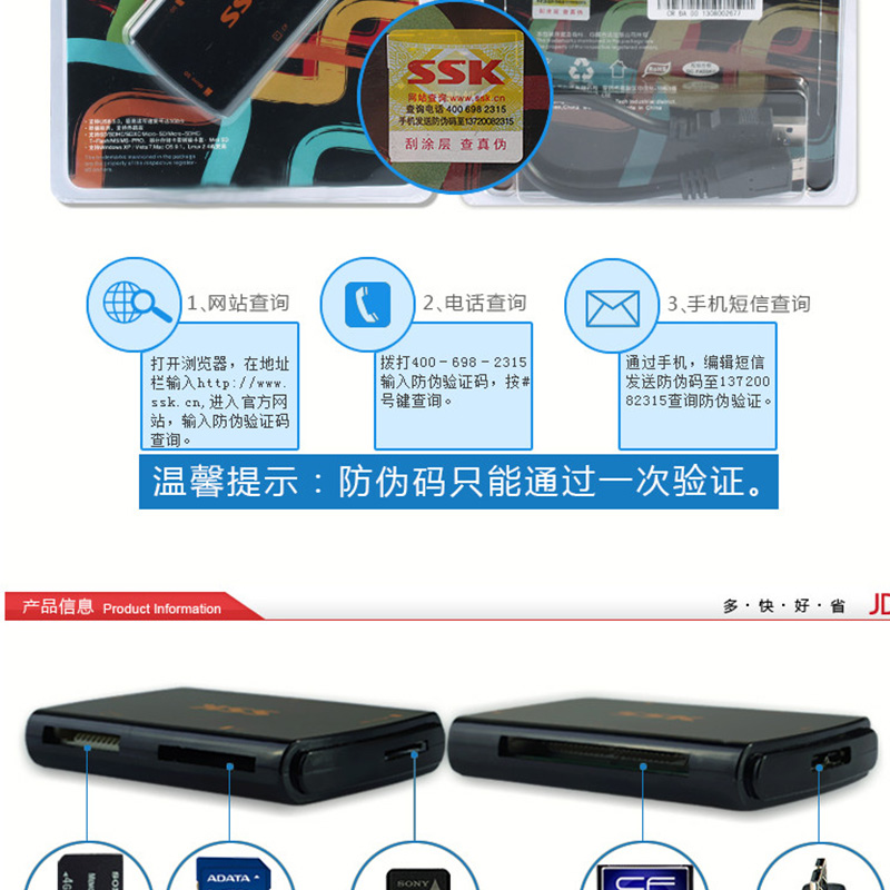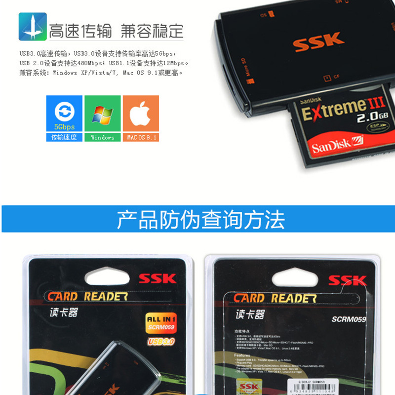 飚王(SSK) SCRM059 多功能合一讀卡器 USB3.0高速讀寫 支持TF/SD/CF/MS手機卡相機卡