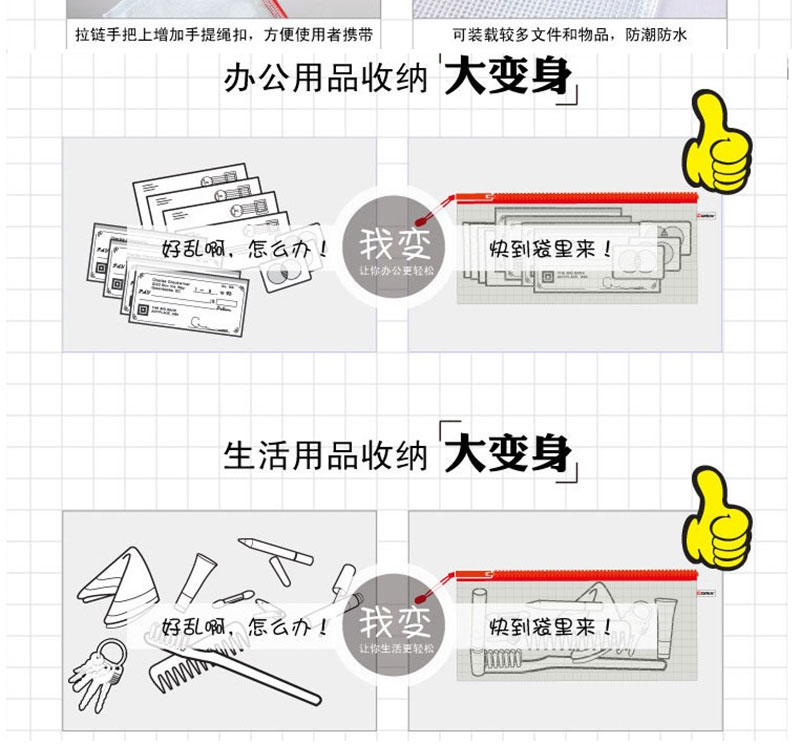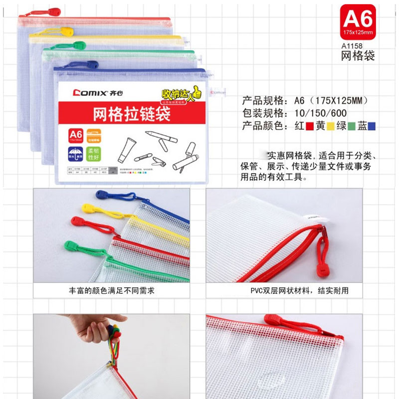 齊心(COMIX) A1158 A6防潮網(wǎng)格拉鏈袋/文件袋/資料袋 顏色隨機175*125mm 10個/包