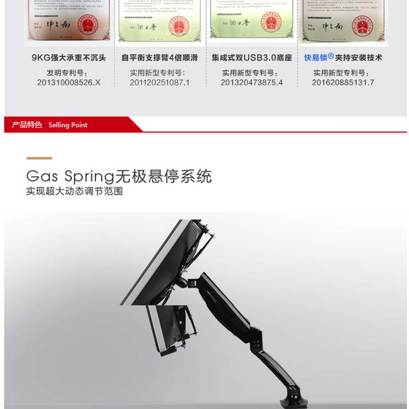 自由懸停,橫豎屏切換,usb接口,節(jié)省桌面空間 適用17-30英寸 ?