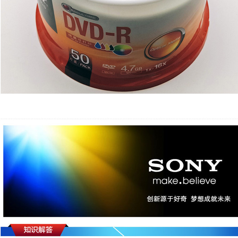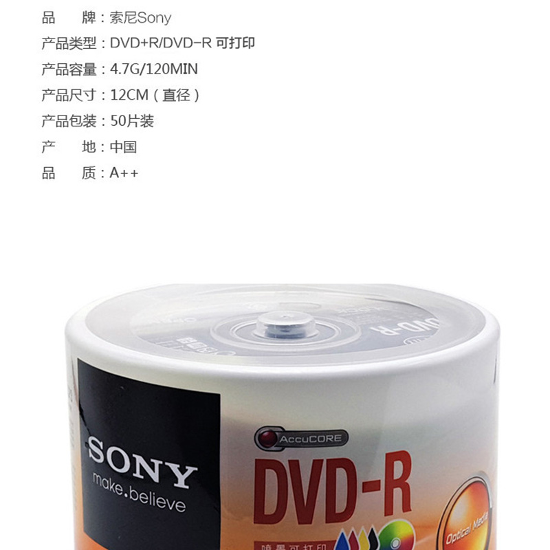 索尼(SONY) DVD-R 光盤/刻錄盤 16速4.7G(50片桶裝)