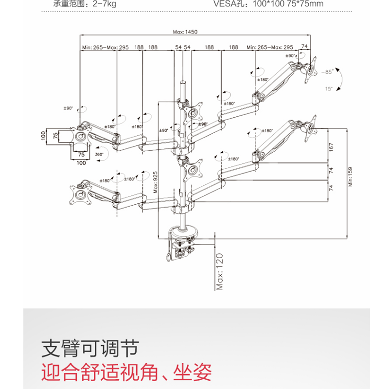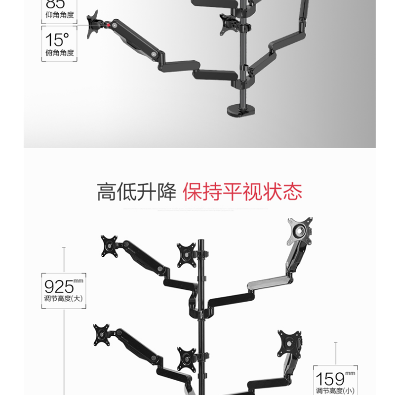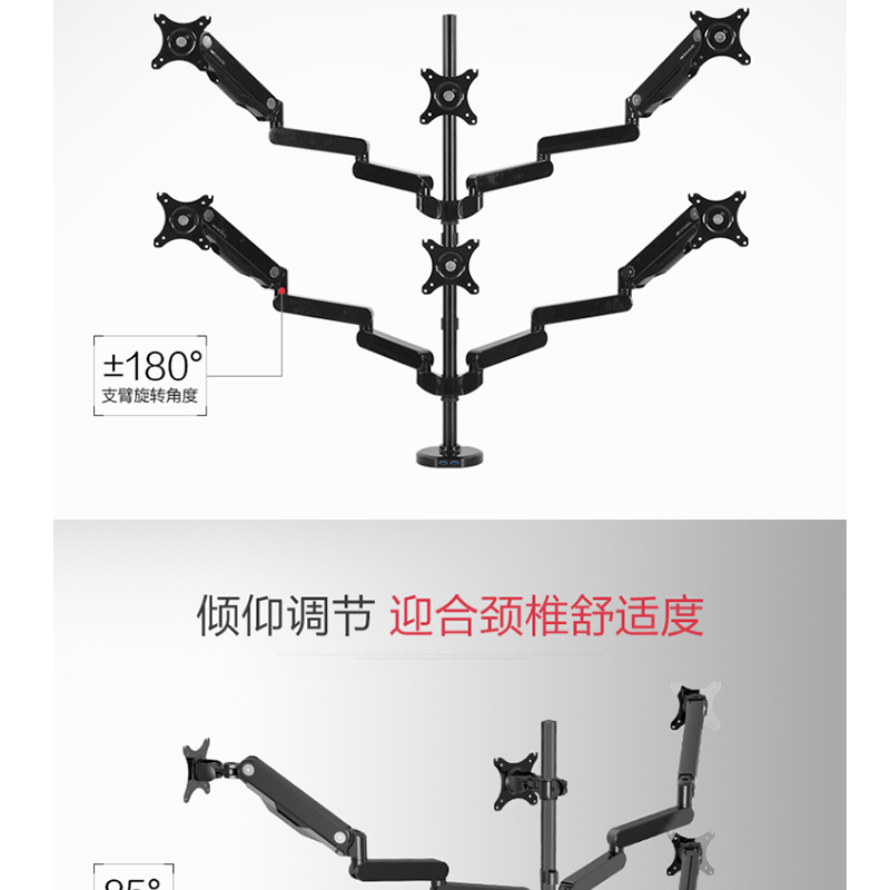 樂歌(Loctek) Q5S 六屏顯示器支架 全鋁電腦支架 旋轉伸縮支架