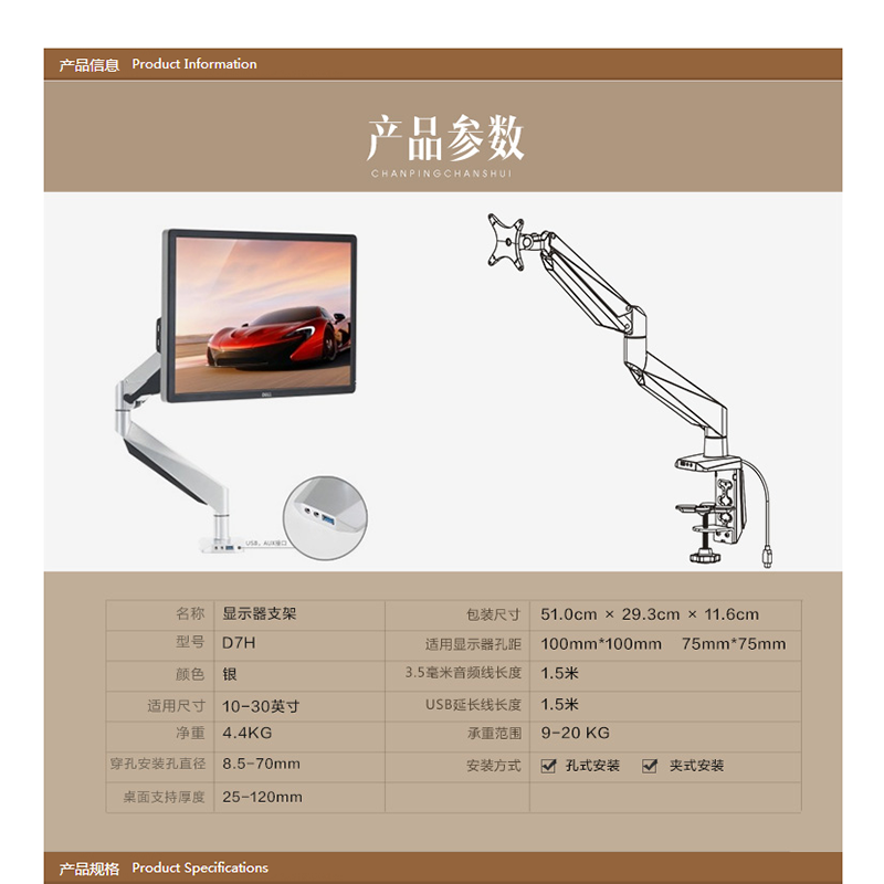 樂歌(Loctek) D7H 單屏支架 顯示器支架 旋轉(zhuǎn)升降伸縮支架