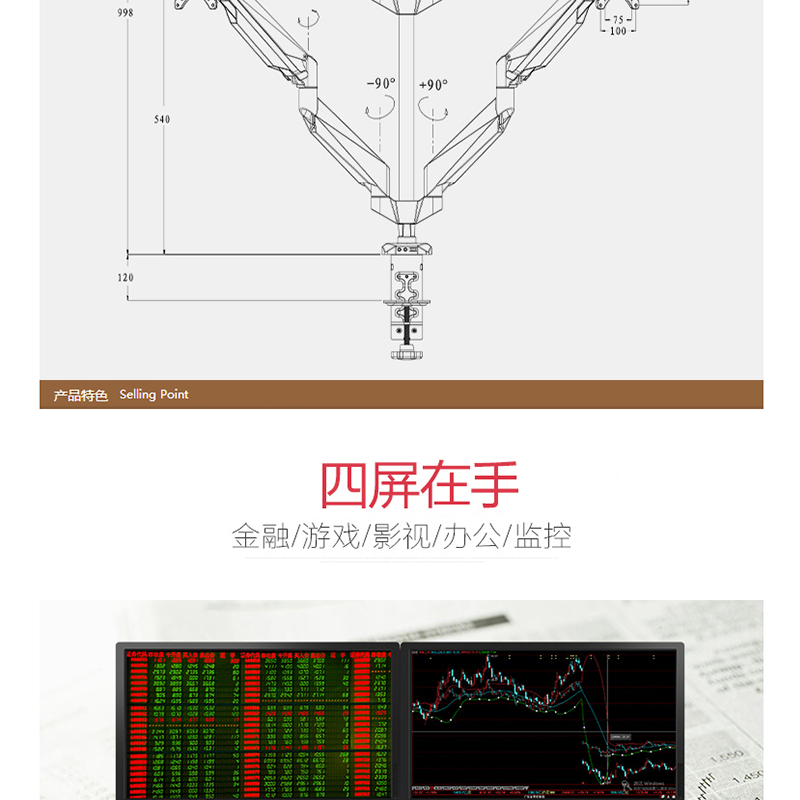 全鋁氣彈簧工藝,四屏旋轉(zhuǎn)升降,集成USB ?