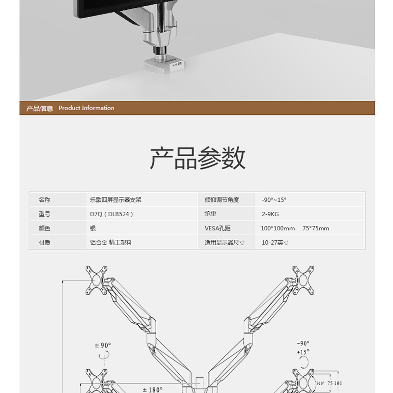 樂歌(Loctek) D7Q 四屏拼接架 顯示器支架 全鋁電腦支架