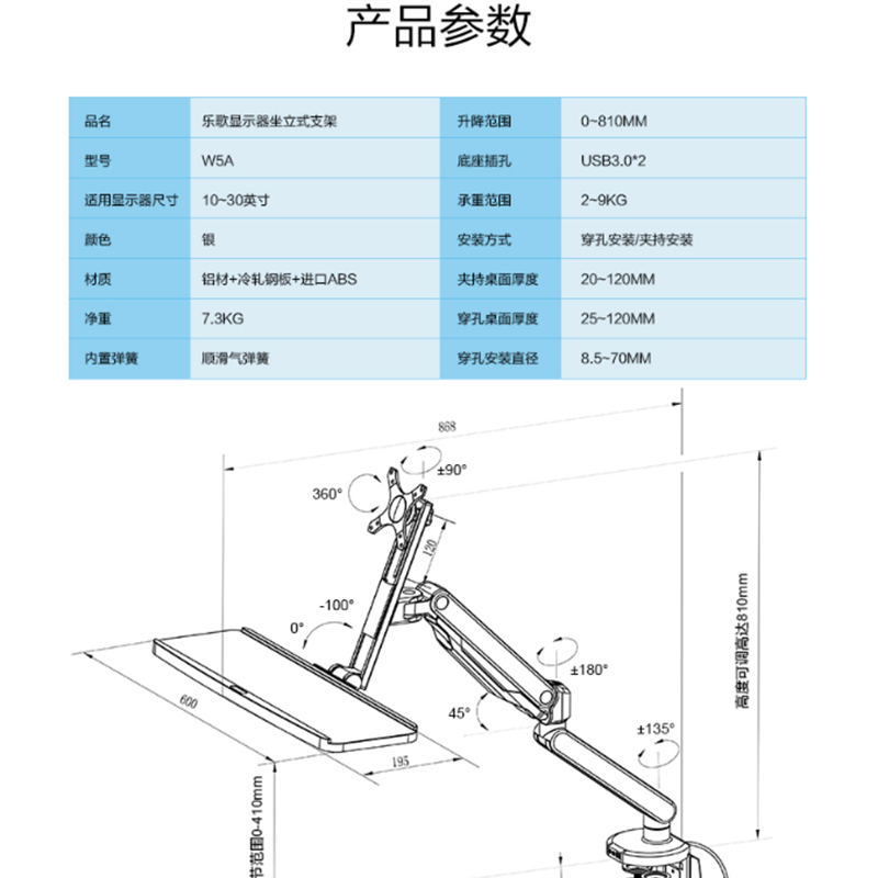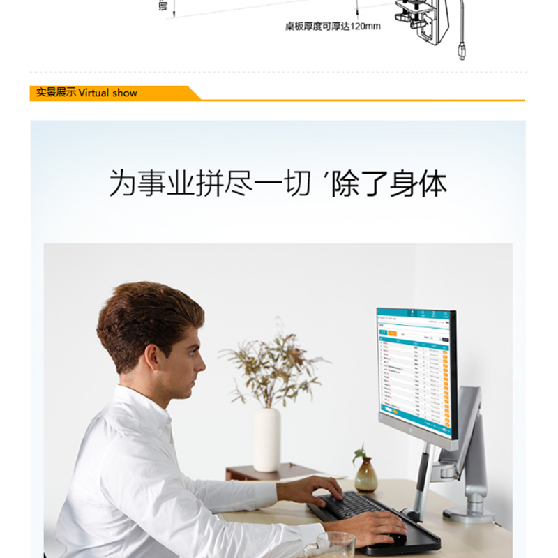 坐站交替電腦顯示器支架,氣彈簧升降,減少桌面空間,5年質(zhì)保,告別伏案 ?