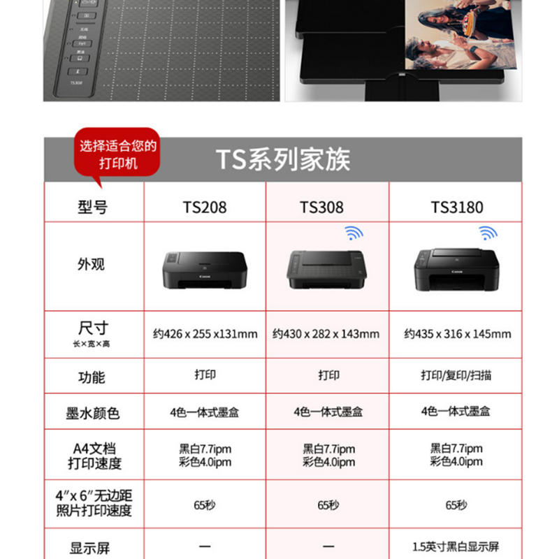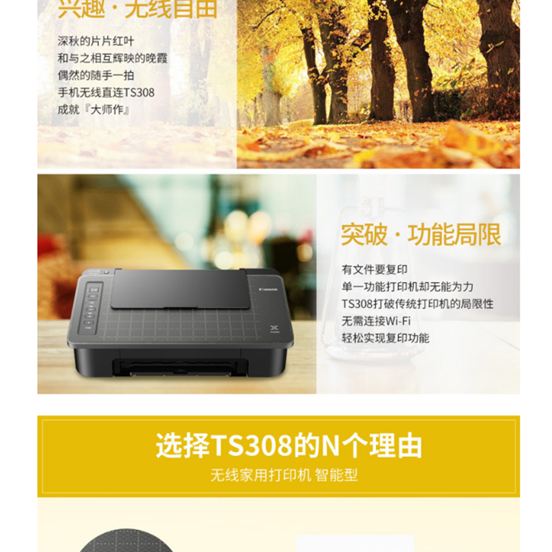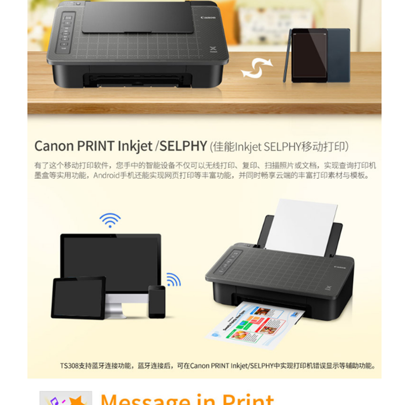 佳能(Canon) TS308 無線家用噴墨打印機 智能型