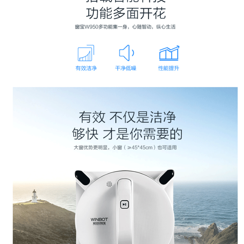 科沃斯(Ecovacs) W950-SW 家用智能全自動 擦窗清潔機器人