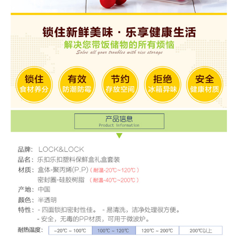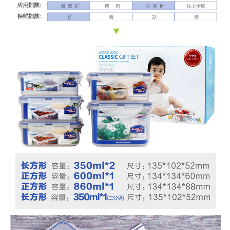 樂扣樂扣(locklock) HPL855S001 保鮮盒5件套 塑料密封盒 便當盒餐盒套裝