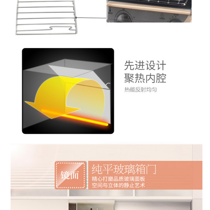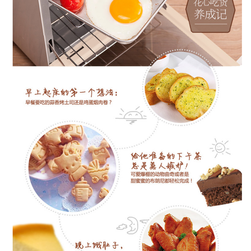 全鋼機(jī)身、精致小巧,小容量給您大驚喜;獨(dú)立控溫、精準(zhǔn)控溫,高品質(zhì)烘烤工具,3D熱源對(duì)流 ,對(duì)每個(gè)食物做到每個(gè)角度的烘焙 ?