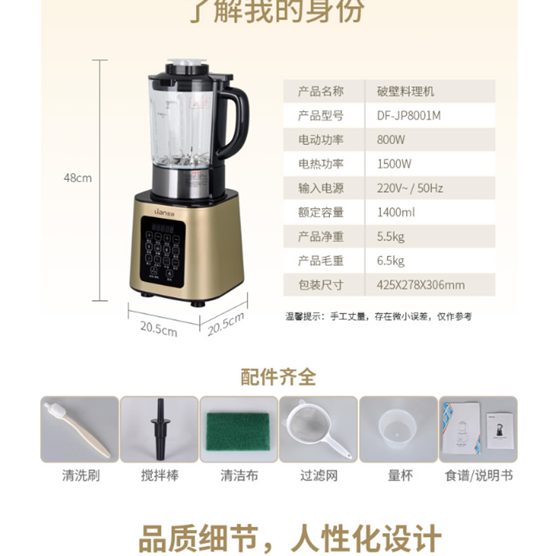 聯(lián)創(chuàng)(Lianc) DF-JP8001M 破壁機(jī)多功能加熱家用料理機(jī)攪拌機(jī) 1400ml
