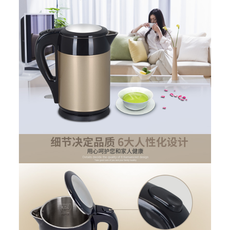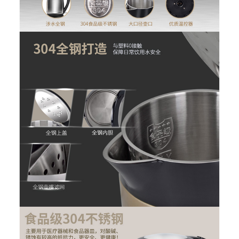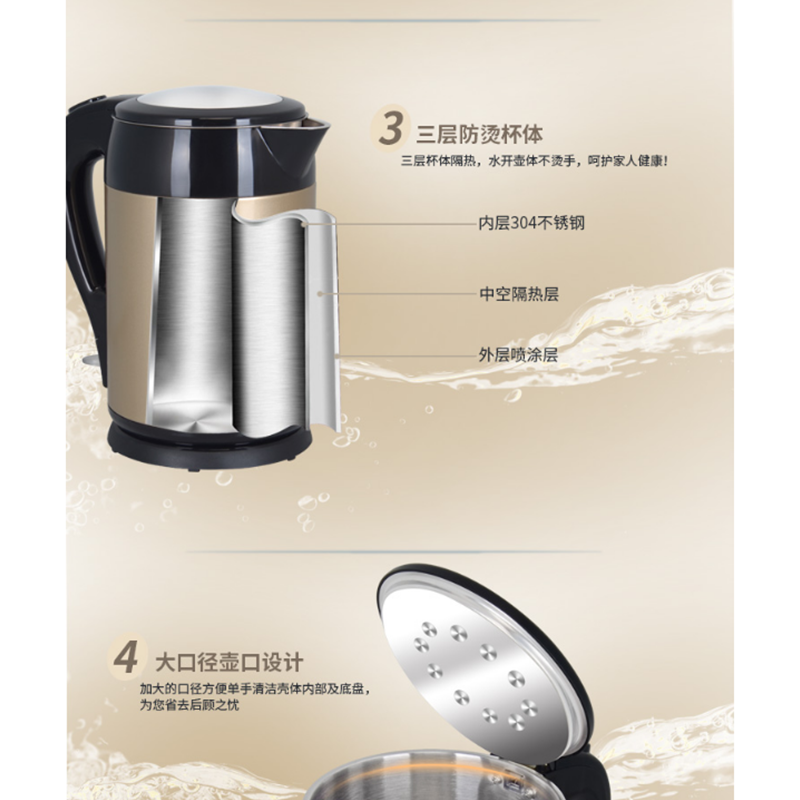 干燒保護(hù),安全可靠,雙層保溫設(shè)計,燒水過程中外殼溫度防燙傷,并有長時間保溫 效果。 ?