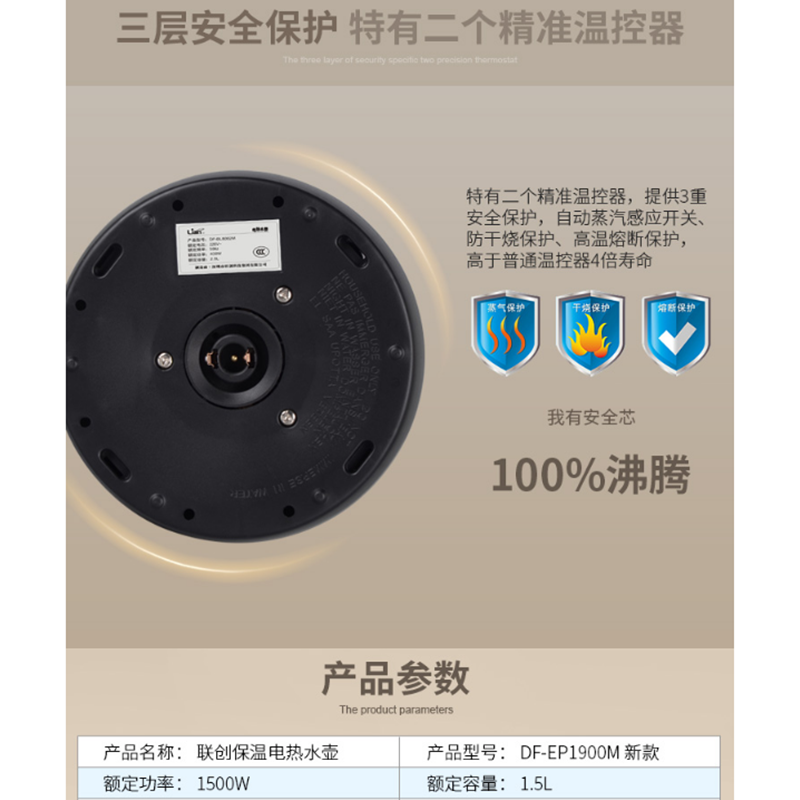 聯(lián)創(chuàng)(Lianc) DF-EP0825M 全自動不銹鋼多功能電熱燒水壺 1.5L