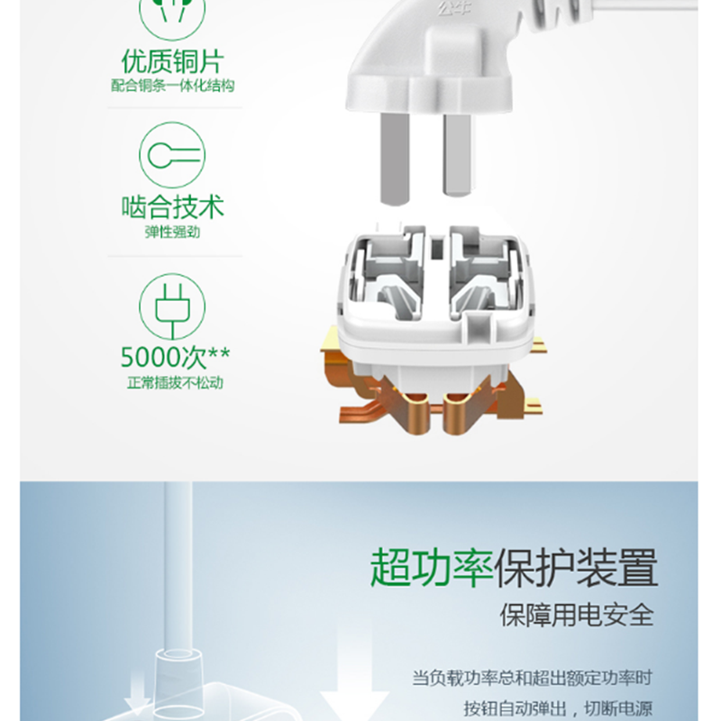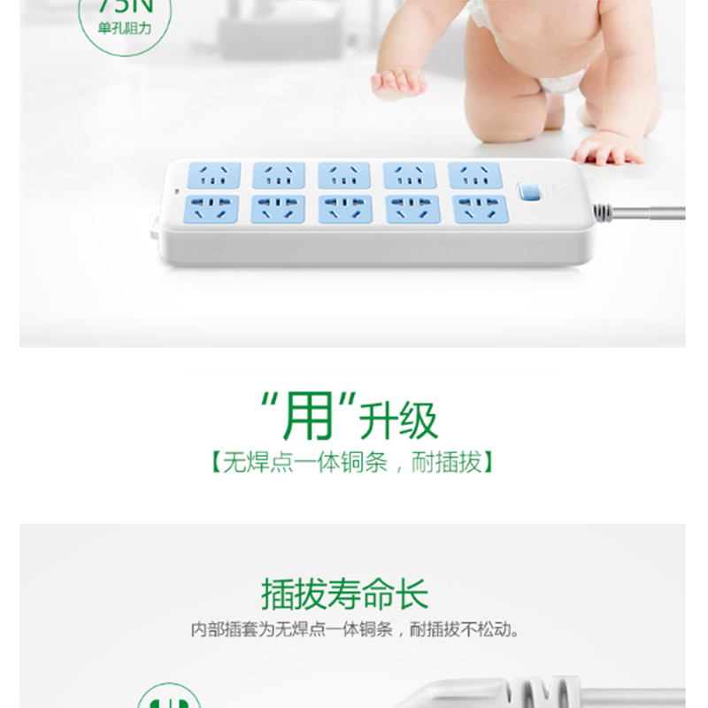 十孔位,超功率保護、大孔間距、總控開關(guān)、耐高溫防觸電 ?