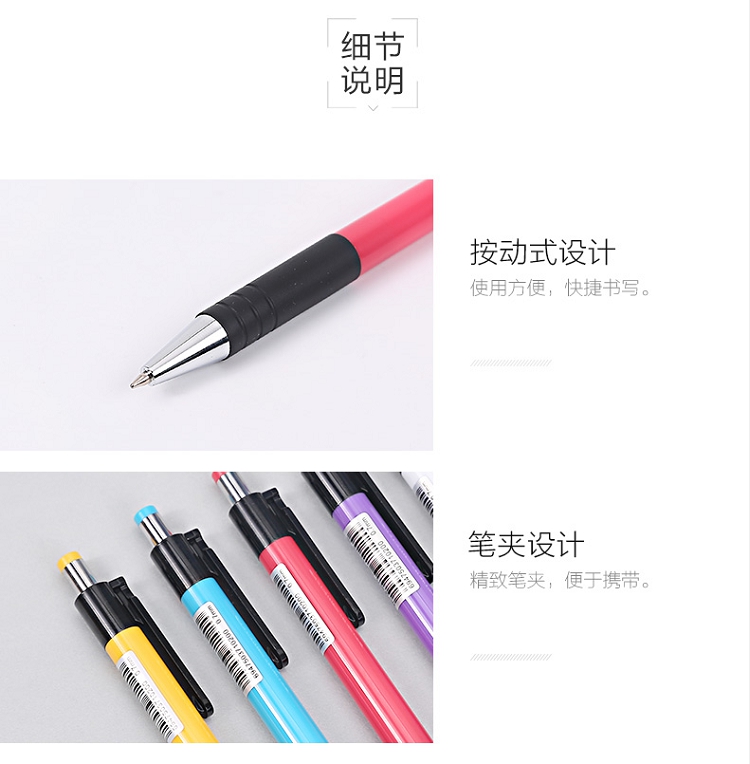 筆內(nèi)按動彈簧,按動順暢,設(shè)計時尚簡潔 ?
