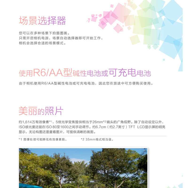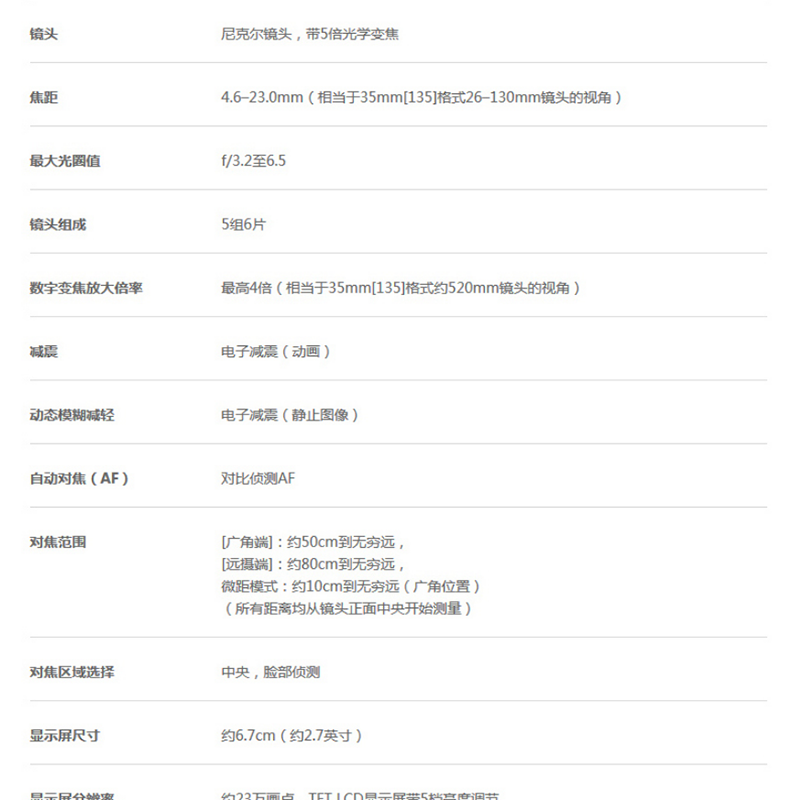 輕便易攜帶,5倍光學變焦的26mm鏡頭,約1614萬有效像素 ?