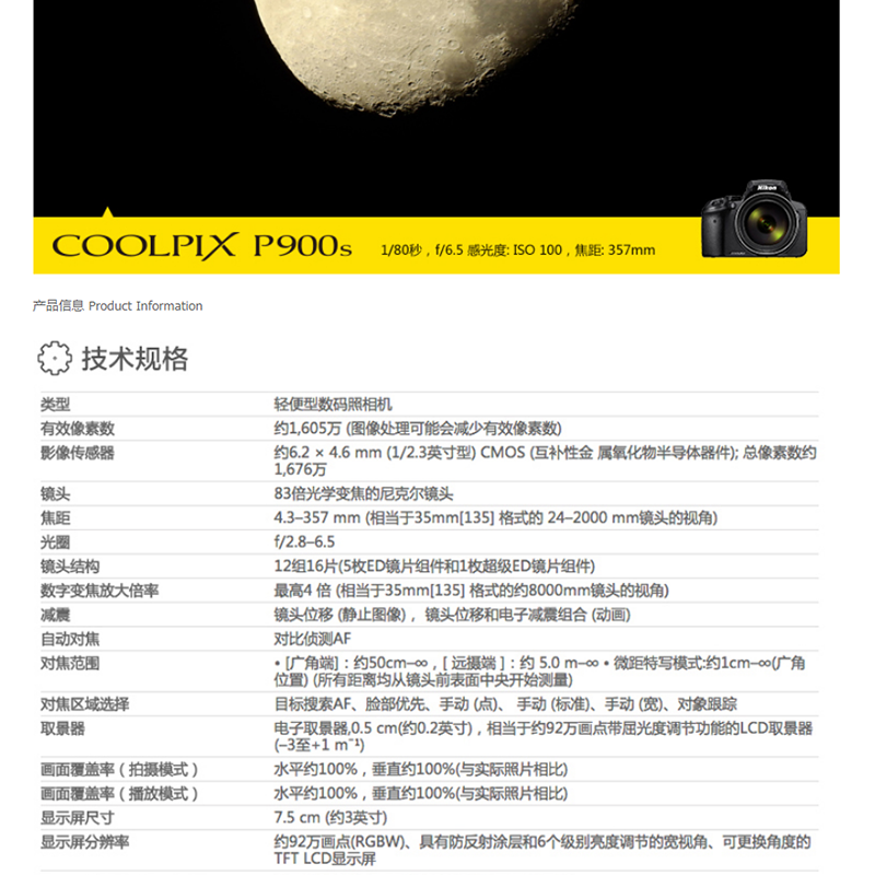 尼康(Nikon) COOLPIX P900s 超長(zhǎng)焦數(shù)碼相機(jī)