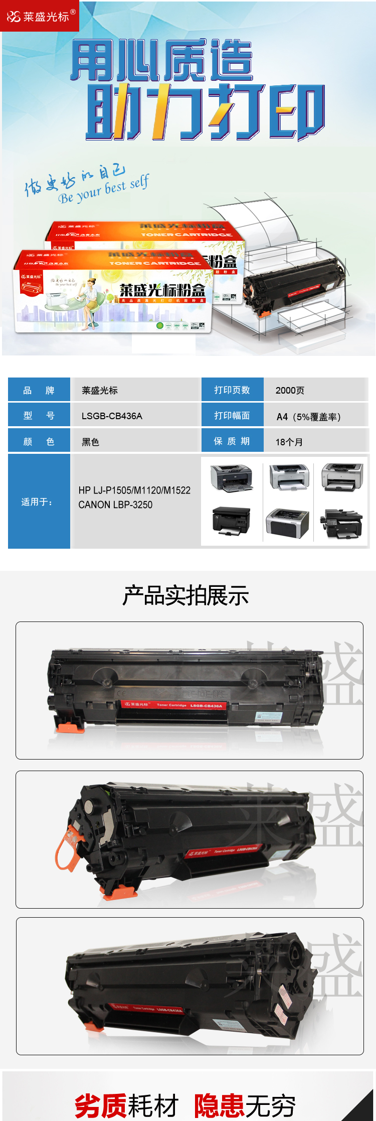 萊盛(laser) LSGB-CB436A 打印機硒鼓